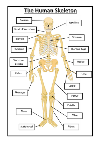 Human Skeleton Labelling Sheet | Human Bones Labelled - Twinkl Use this worksheet pack with your third to fifth grade class to help teach them biology and to name the different parts of the human skeleton. This resource includes a labelled diagram, which can be used for reference or as part of a classroom display. It can also be used as an answer sheet for the human skeleton labeling activity included.