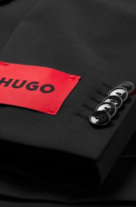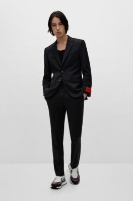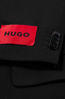 Men's Suits | Black | HUGO BOSS BOSS 6. HUGO 8. Filter (1) Sort: Slim-fit suit in performance wool-blend twill. Modern-fit suit in a performance virgin-wool blend. Slim-fit suit in wool-blend twill. Regular-fit suit in a micro-patterned wool blend. Slim-fit tuxedo in Italian virgin wool and mohair.