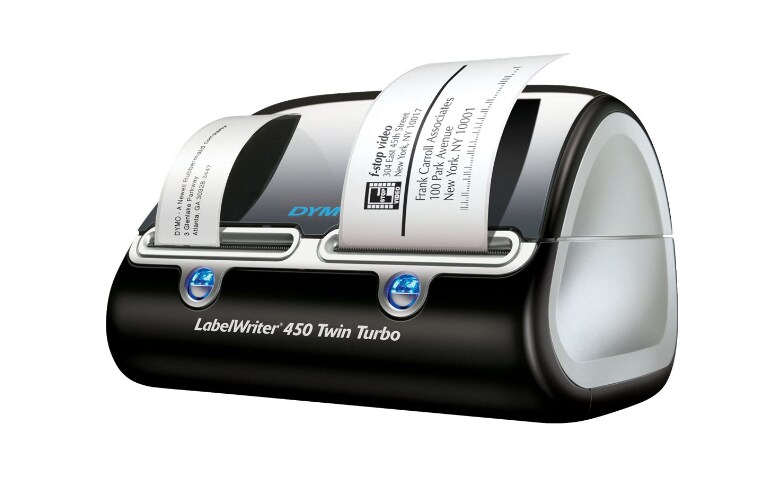 DYMO LabelWriter 450 Twin Turbo Direct Thermal Label Printer ... The DYMO LabelWriter® 450 Twin Turbo features two rolls of labels ready to print at all time–enhancing efficiency by allowing you to print address labels and postage without swapping label rolls–and prints up to 71 four-line standard address labels per minute for maximum productivity.