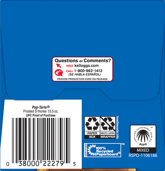 Frosted S'Mores Pop-Tarts Frosted S'Mores Pop-Tarts® toaster pastries are packed with chocolate and ... For full nutrition information and other package sizes, visit Smartlabel:.