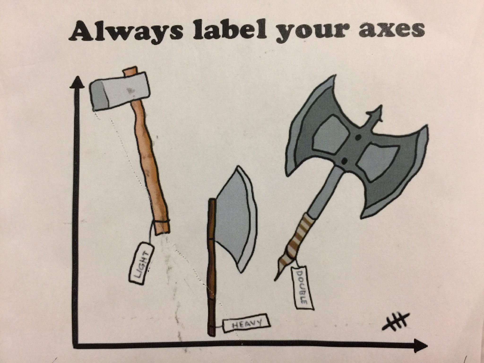Label your axes. label your axes - storytelling with data Exceptions to this data visualization best practice will be extremely rare. Check out this post for an amusing example of why labeling your ... Convincing - xkcd Man: Maybe you're right. Woman: I knew data would convince you. Man: No, I just think I can do better than someone who doesn't label her axes. How to Add Axis Labels in Excel - Causal Axis labels are the text labels that appear along the horizontal and vertical axes of a chart. They can be used to indicate the units of measure for the ... Rule 24: Label your bars and axes - AddTwo 'Always label your axes', says the peerless Nathan Yau on his ... Add data labels to your bar whenever your audience 'needs to know the ...