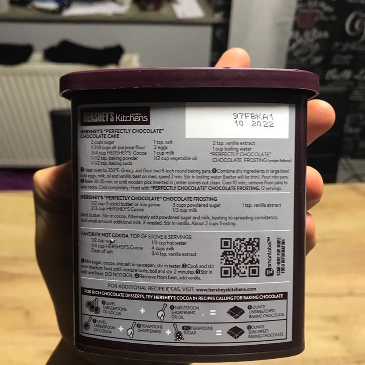 Hershey's cocoa powder ingredients label. HERSHEY'S Natural Unsweetened Ingredient Gluten Free No ... HERSHEY'S Natural Unsweetened Ingredient Gluten Free No Preservatives Cocoa Can ; Ship. Unavailable ; Nutrition Facts. servings per container. Serving size1tbsp ( ... HERSHEY'S COCOA 100% Cacao Natural Unsweetened, 8 oz can Give baking and hot chocolate-making 100 percent with HERSHEY'S Cocoa. From heavenly hot chocolate to fabulous frostings and gluten-free desserts, this 100% ... Hershey's Cocoa Powder, 225G - Amazon.com Hershey's Cocoa Powder. Give baking and hot chocolate-making 100 percent with Hershey's Cocoa. From heavenly hot chocolate to fabulous frostings and desserts, ... Hershey's Cocoa Powder, 225g - Amazon.in Hershey's Cocoa is 100 percent Natural and Unsweetened. It contains antioxidants also found in tea and certain fruits. Enjoy delicious desserts and baking ...